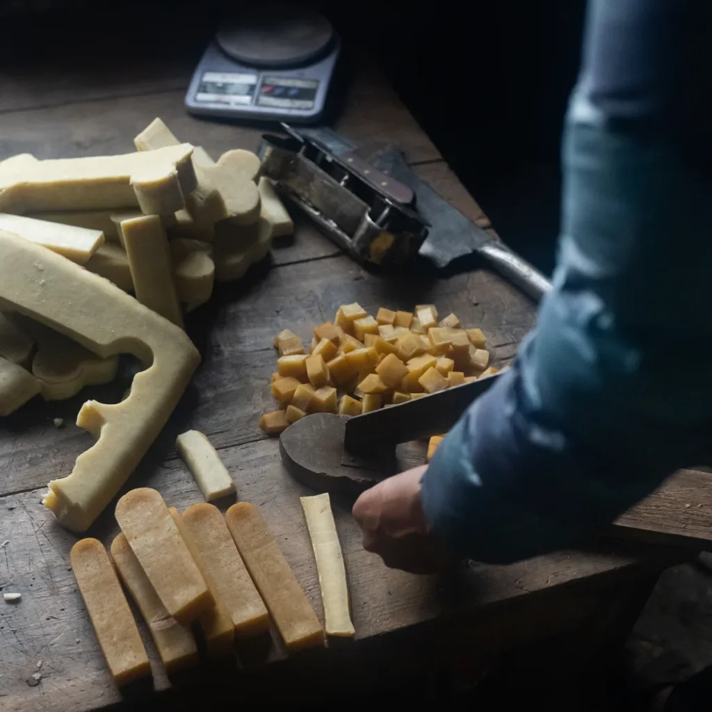The process of making Chhurpi is as natural as it gets. Fresh yak or cow milk is boiled, curdled with a little lime juice, and then pressed into blocks. These blocks are carefully dried and smoked for weeks, which gives Chhurpi its signature hardness and irresistible smoky flavor.